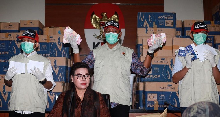 “Uang yang diterima tersebut diduga telah diubah menjadi pecahan Rp 50 ribu dan Rp 20 ribu sebagaimana ditemukan tim KPK dalam amplop-amplop di sebuah kantor di Jakarta,” kata Basaria.