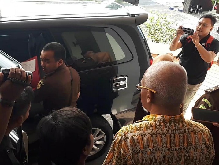 Syamsul tiba di Kantor Kejari sekitar pukul 10.00 WIB dengan mengendarai mobil Toyota Innova bernomor polisi S 1022 BS. Ia didampingi sopir dan anaknya.