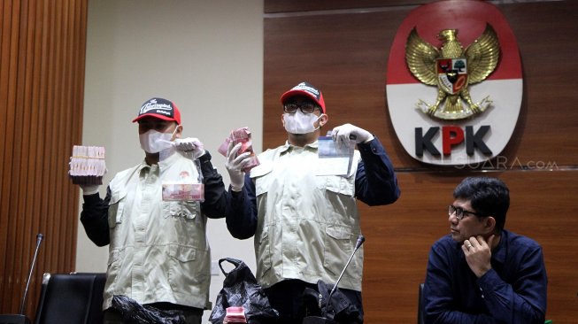 Tiga orang tersebut ditetapkan sebagai tersangka seusai terjaring operasi tangkap tangan, Jumat (3/5).