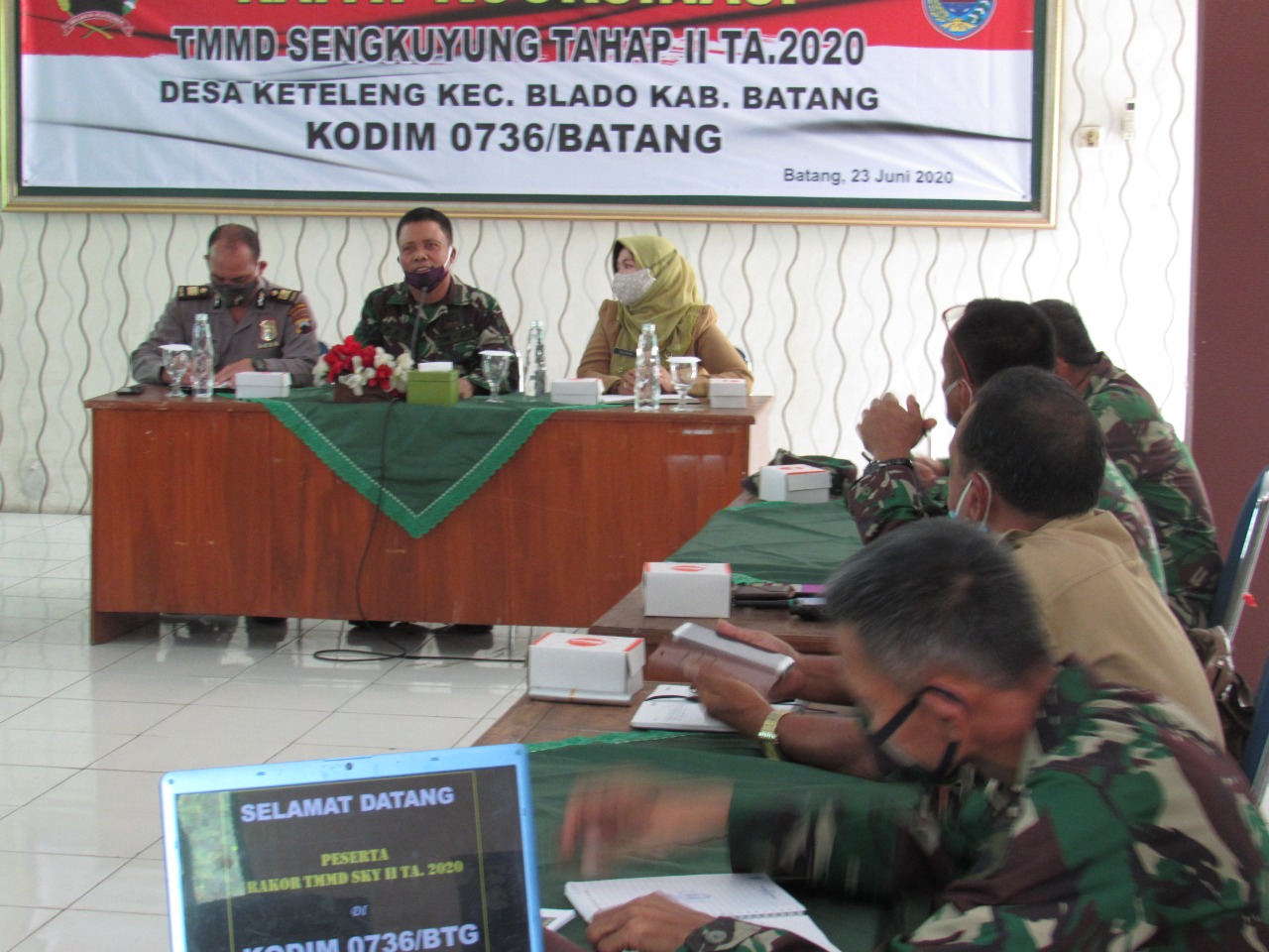 BATANG, WRC – Menjelang  TNI Manunggal Membangun Desa (TMMD) tahap II tahun 2020, yang akan dilaksanakan di Desa Keteleng  Kecamatan Blado Kabupaten Batang. Di adakan rapat koordinasi (Rakor)  di Aula Mako Kodim 0736/Batang. Selasa (23/6/20).