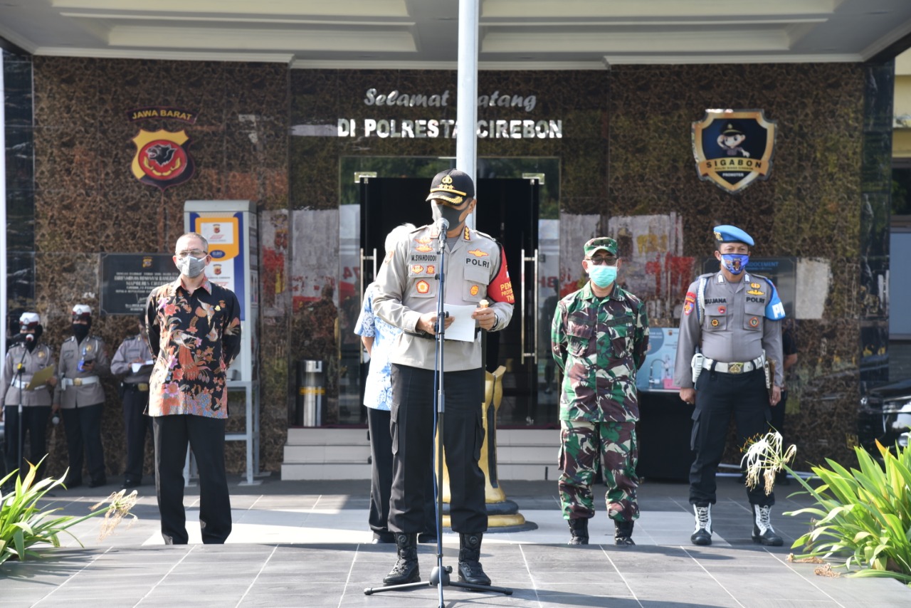 Cirebon, WRC – Kepala Kepolisian Resor Kota Cirebon ( Polresta Cirebon ) Kombes Pol. M. Syahduddi, S.I.K., M.Si., Pimpin apel pendistribusian paket sembako yang bertempat di Mapolresta Cirebon, dalam rangka menyambut Hari Bhayangkara ke-74 pada tanggal 1 Juli 2020 mendatang. Jumat, (26/06/2020).