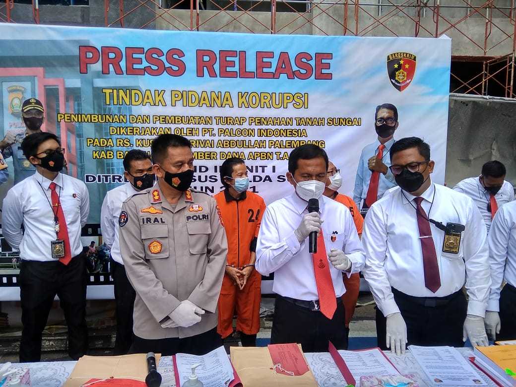 “Dua orang ini yang satu oknum ASN dan yang satunya lagi dari swasta kita tetapkan sebagai tersangka dalam kasus dugaan korupsi pembangunan di RS Banyuasin,” kata Dirreskrimsus Polda Sumsel, Kombes Barly Ramadhani, dalam konferensi pers di Polda Sumsel, Palembang, Senin (27/9/2021).