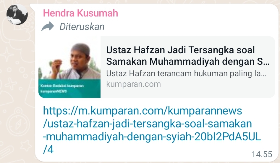 Tangkapan layarUstadz Hafzan El Hadi (HEH) minta maaf usai menyamakan Muhammadiyah dengan Syiah. Polda Sumbar menolak laporan dari LBH MUhammadiyah untuk pimpinan ponpes, HEH.