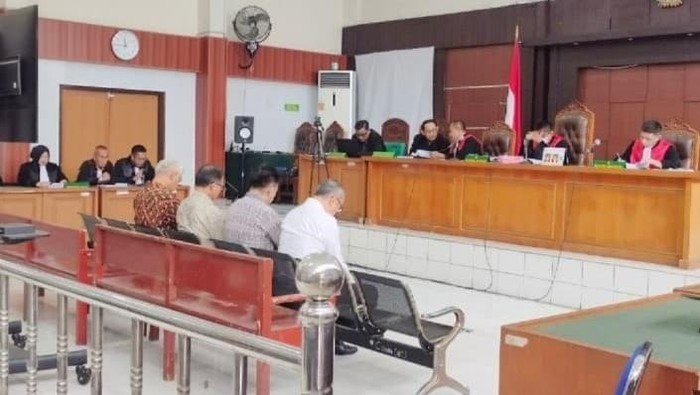 Tiga mantan petinggi perusahaan BUMN yang menjadi terdakwa kasus dugaan korupsi proyek strategis nasional Light Rail Transit (LRT) Sumsel menjalani sidang tuntutan di Pengadilan Tipikor PN Kelas IA Palembang, Selasa (15/4/2025). Ketiga terdakwa yakni Tukijo selaku mantan Kepala Divisi II, Ignatius Joko Herwanto selaku mantan Kepala Divisi II dan Septriawan Andri Purwanto selaku mantan Kepala Divisi III.